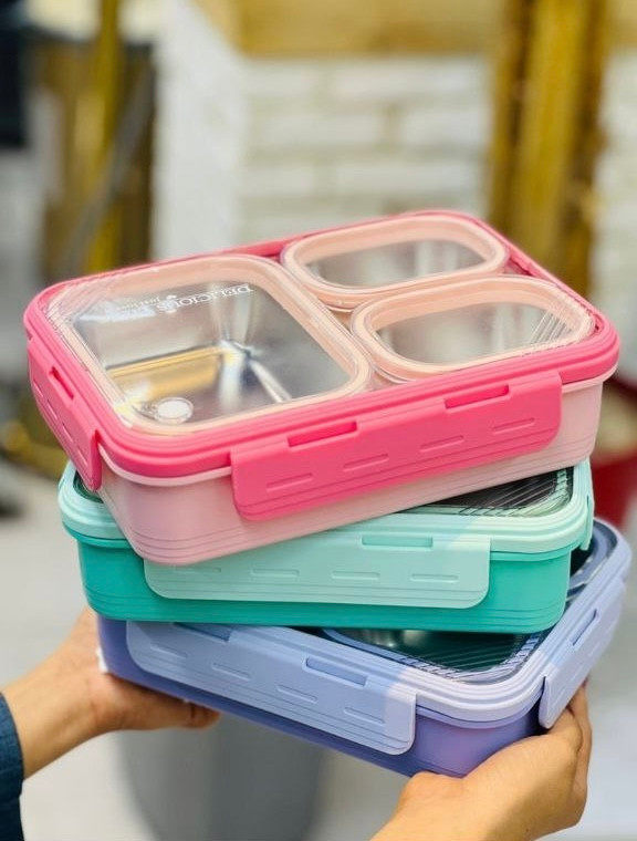 ظرف غذا فلزی تقسیم بندی شده سه خانه واشردار وارداتی