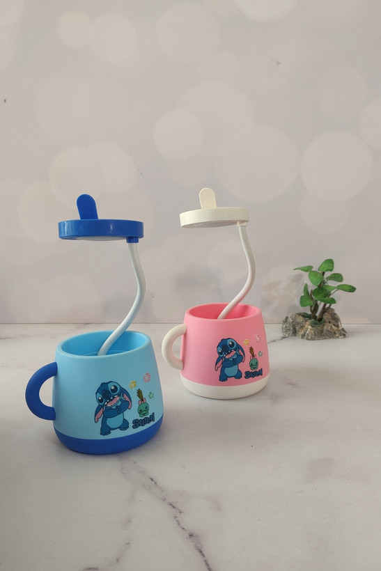 چراغ مطالعه فنجونی وارداتی طرح استیچ آبی و صورتی
